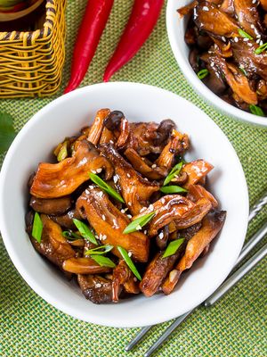 Austrių grybai saldžiarūgščiame padaže