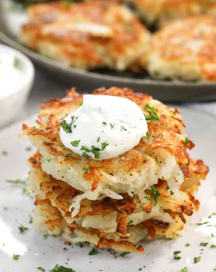 Bulviniai blynai yra absoliučiai mėgstamiausias mano patiekalas! Šis receptas gaminamas iš smulkintų bulvių, sumaišytų su miltais ir kiaušiniais, kad gautųsi tobulai traškūs blynai!