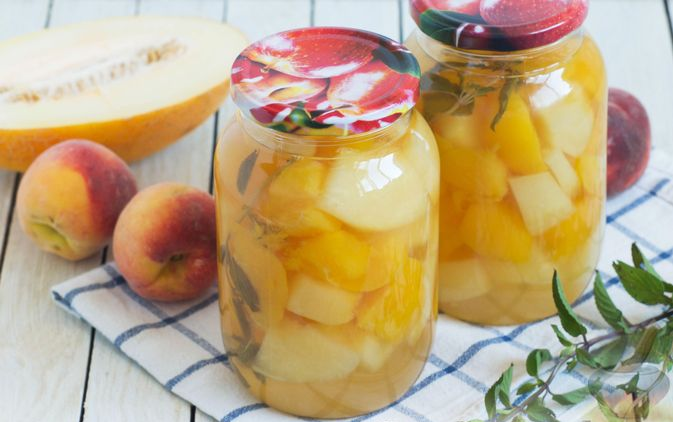 Persikų kompotas su melionais ir mėtomis (žiemai)