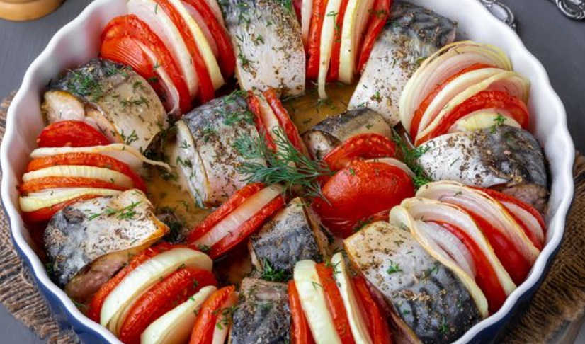 Lydekos su daržovėmis ir obuoliais