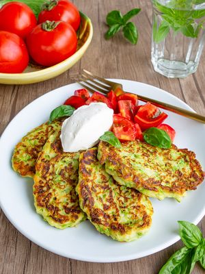 Pirmiausia, nuskuskite cukinijas. Tada jas sutarkuokite stambia tarka. Norėdami pašalinti perteklinį drėgmę, galite tų tarkuotų cukinijų šiek tiek paspausti rankomis arba naudoti sietą.