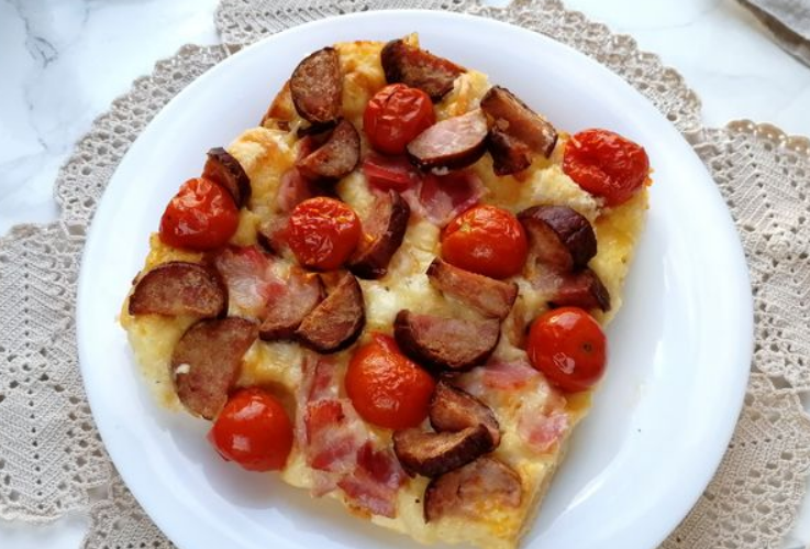 Šis lengvai paruošiamas troškinys gaminamas be tešlos. Baltos duonos riekelės yra apkepo pagrindas, o rūkyta mėsa, vyšniniai pomidorai ir sūris – gardus įdaras. Sluoksniuokite, užpilkite kiaušinių ir pieno mišiniu ir kepkite orkaitėje, kol virtuvė prisipildys gardžių aromatų.