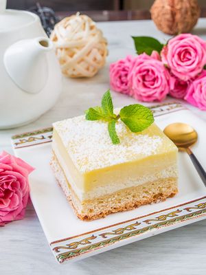 Po kepimo leiskite pyragui atvėsti. Jį galima patiekti tiek šiltą, tiek vėsų. Drezdeno kiaušinių pyragas puikiai tinka su vaniliniu ledais arba plakta grietinėle 🍦.