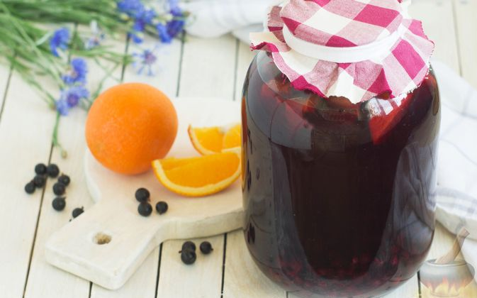Produktai Juodųjų serbentų kompotas su apelsinais (žiemai)