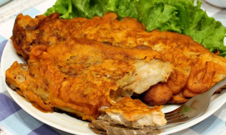 Keptuvėje įkaitinkite augalinį aliejų ir sudėkite skumbrių filė į tešlą.