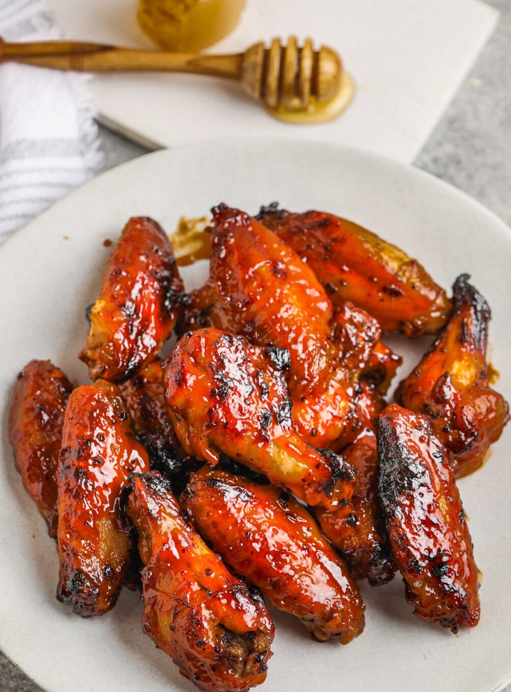 Medaus BBQ sparneliai yra viskas, kas turi būti sparneliai – traškūs, sultingi ir su saldžiu lipniu padažu.