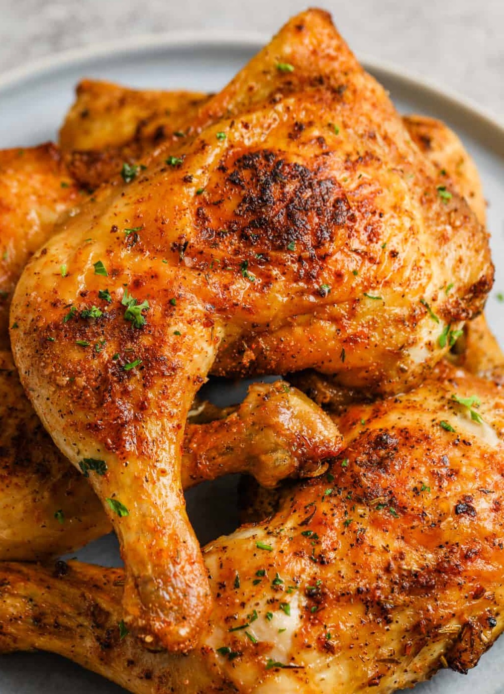Tiesiog pagardinkite prieskoniais, įdėkite į orkaitės krepšelį ir paspauskite paleidimo mygtuką. Vištienos šlaunelės orinėje keptuvėje per kelias minutes taps puikios kaip iškyla!
