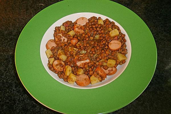 Lęšių sriuba Sudedamosios dalys 1 skardinė lęšių 4 bulvės (-ės) 50 g kumpio (Katen), supjaustyto kubeliais 2 daržovių sultinio kubeliai 125 ml vandens Druska Pipirai Actas Paruošimas Darbo laikas maždaug 5 minutės Iš viso maždaug 5 minutės Apkepkite kumpį, sudėkite kubeliais supjaustytas bulves. Pripilkite vandens. Sudėkite lęšius ir sultinio kubelius ir virkite, kol bulvės išvirs. … Skaityti toliau