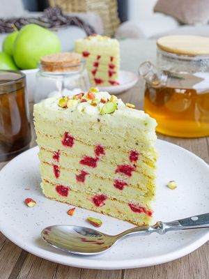 Receptas: Pistacijų pyragas su avietėmis 🍰