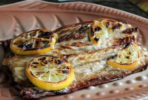 Pritvirtinkite žuvį prie grotelių, kad ji nepakeistų padėties. Griliai paspaus citrinas, jos leis sultims tekėti ir šiek tiek pamirkys skumbrę. Šiai ryškaus skonio riebiai žuviai pakanka šio paprasto marinato.