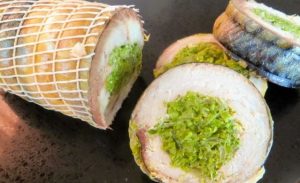 Recepto nuotrauka: Suvyniota skumbrė su keptais svogūnais ir česnakų ūgliais – 9 etapas
