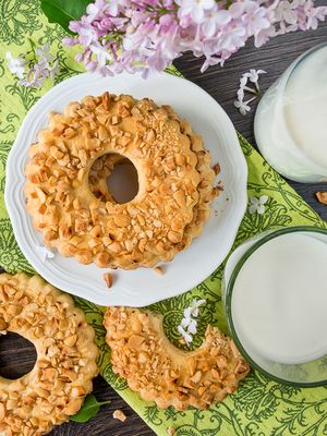 - Įdėkite žiedus į įkaitintą orkaitę ir kepkite apie 15-20 minučių, arba kol jie taps švelniai auksinės spalvos. 🍪