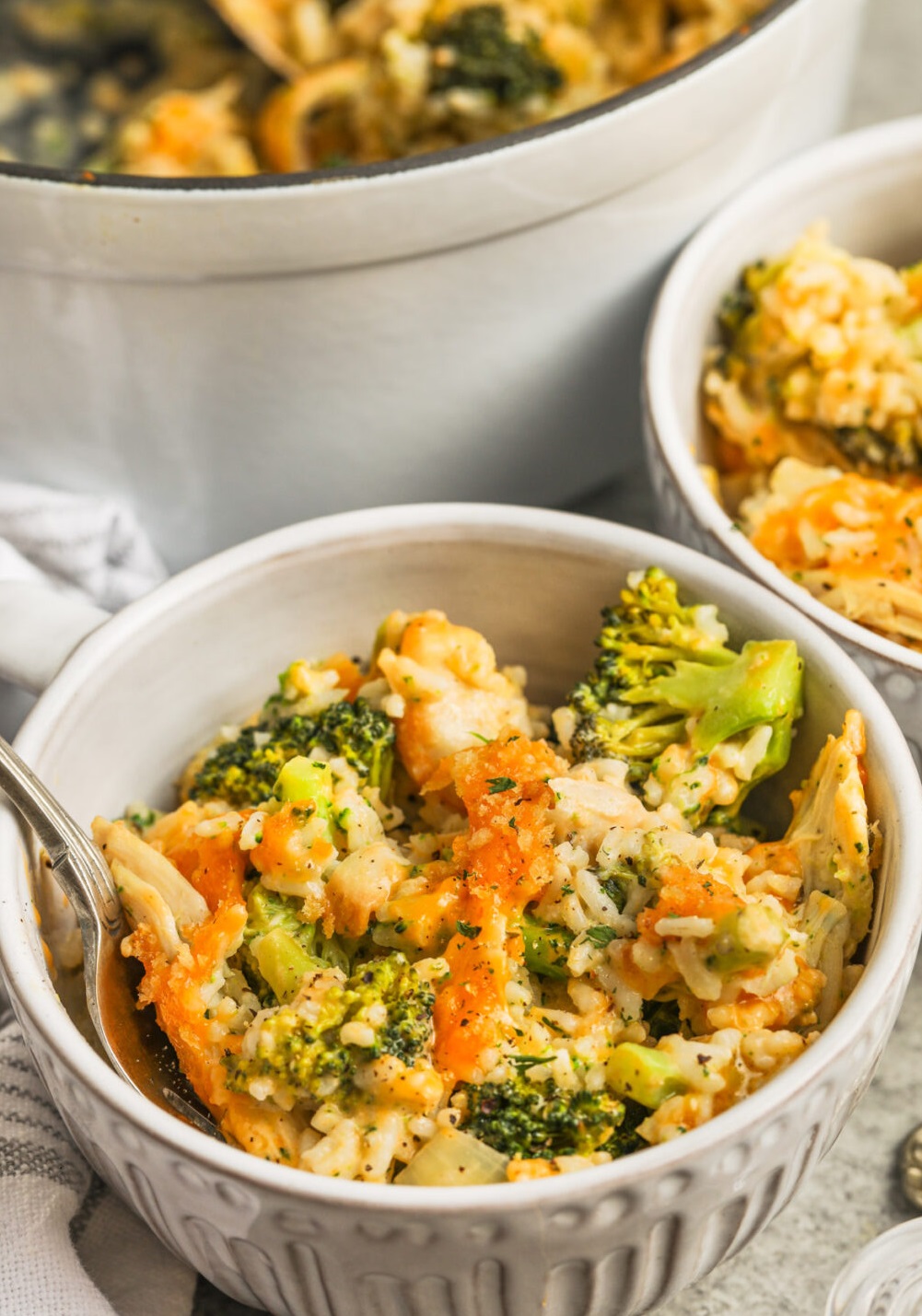 Švelnūs vištienos gabaliukai, brokoliai ir ryžiai greitame kreminiame padaže. Vieno puodo ir daug sūrio (sriubos kremo nereikia), todėl šis patiekalas taps mėgstamiausiu savaitės vakaro patiekalu!