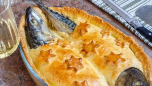 Stargazey fish pyragas – įdomios išvaizdos pyragas, garsėjantis Anglijoje. Žuvų galvos ir uodegos kyšo iš po rausvos pyrago plutos, tarsi jos žiūrėtų į žvaigždes, nuo to ir kilo pyrago pavadinimas. Jame gausu priedų, įskaitant žuvį, įdarytą svogūnais, džiūvėsėliais ir petražolėmis, ir keptą šoninę su svogūnais ir virtais kiaušiniais. Puiki idėja nustebinti, taip pat sotūs ir skanūs svečiams ir namiškiams pamaitinti.