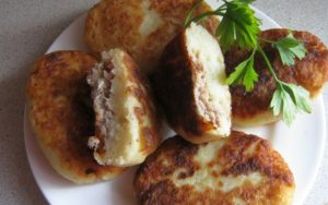 1. Nuplaukite bulves ir virkite, kol suminkštės. Atvėsinkite ir nulupkite. Perdėkite juos per mėsmalę.
